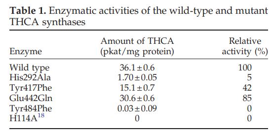 대마의 THC 합성에 관여하는 효소에 대한 실험논문. 결과만 먼저 보자.