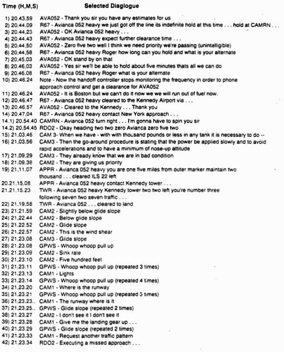 [4] United States. National Transportation Safety Board. (1991). Avianca, the Airline of Columbia, Boeing 707-321B, HK2016, Fuel Exhaustion, Cove Neck, New York, January 25, 1990. National Technical Information Service.