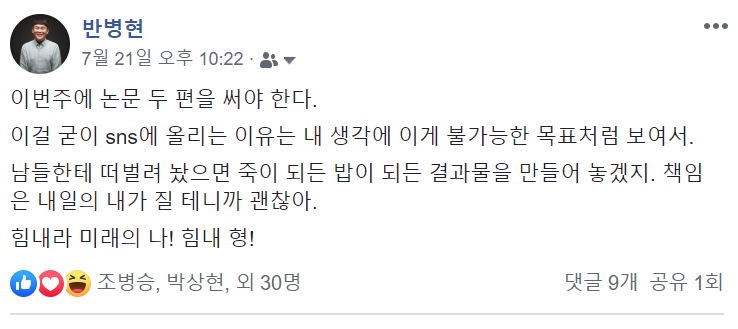 무튼 이번에 무리한 일정을 소화하며, 복무중에 논문을 두 편이나 쓸 수 있었다. 이제 코딩하는 공익이 아니라 연구하는 공익이다. 한 차례 시간배분을 하는 연습을 했으니 남은 복무기간 동안 몇 편의 논문을 더 쓸 수 있을 것 같다. 복무 중에 논문을 완성한 공익이 흔하지는 않을텐데. 필자가 최초면 어떡하나 실없는 생각을 해 본다.