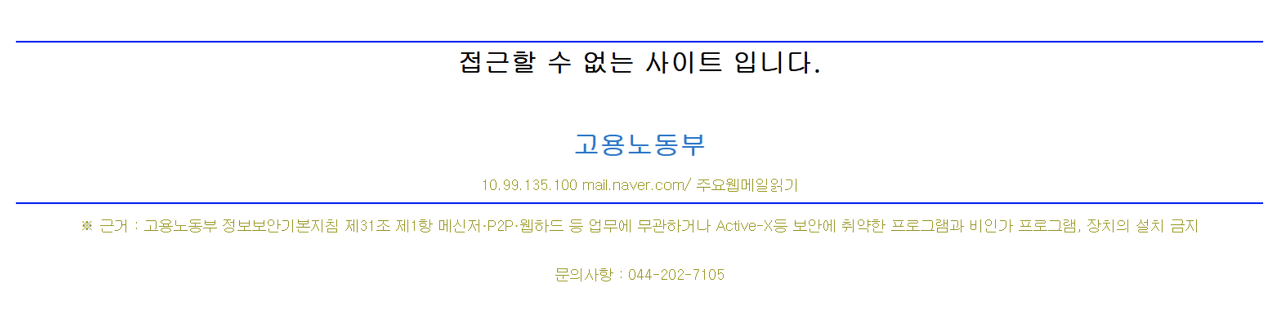 정확한 문구는 기억이 나지 않으나 저런 내용의 경고창이 떴다. 이 업무는 국가정보자원관리원에서 처리하고 있다는 안내와 함께 담당자 연락처가 적혀 있었다. 정말 얼탱이가 없어서 당장 전화를 걸었다.