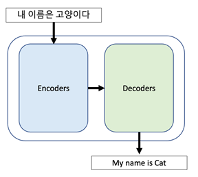 데이터를 압축하는 과정에서 문법이나 단어를 떠나 문장이 가진 추상적인 의미만 남게 되고, 이 의미를 디코더로 팽창하는 과정에서 단어의 선택이나 문법적 구조와 같은 정보가 더해지며 번역된 문장이 출력되는 것입니다.