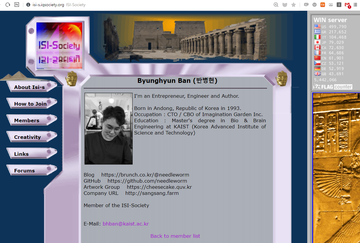 여튼 여기까지 절차를 마무리했다면 가입절차는 모두 끝난다. 이제 추가로, ISI 홈페이지에 올라갈 프로필 정보를 요청하는데 이 부탁은 거절해도 된다. 만약 수락한다면 아래와 같이 ISI 홈페이지에 프로필이 기재된다.