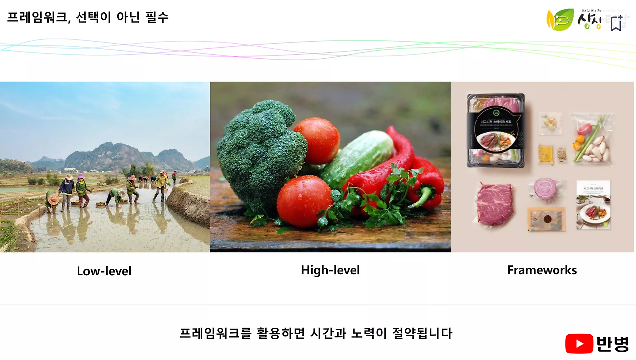 프레임워크를 왜 써야 하는지는 이 슬라이드 한 장으로 설명했는데, 지금 봐도 잘 만든 슬라이드입니다.