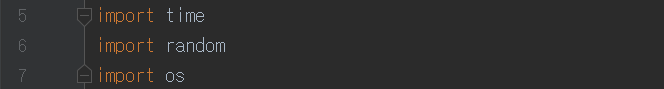 아무튼 다시 코드로 돌아오자. 필자는 여기서 time, random, os 세 개의 라이브러리를 import 했다. time이라는 라이브러리는 이름 그대로 '시간'과 관련된 유용한 기능들을 제공한다. random 라이브러리는 말 그대로 랜덤이다. 뽑기나 확률 등 '무작위'로 처리해야 될 기능이 있을 경우 이 라이브러리를 가져와 사용하면 편리하다. os 모듈은 파이썬의 코드가 os와 소통하기 위한 기능들이 들어있다. 파이썬 코드로 윈도에 명령을 내리거나 정보를 불러오는 작업이 가능해진다.