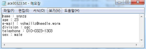 가짜 개인정보 파일을 열어보자. 아래와 같은 구조로 되어 있다.