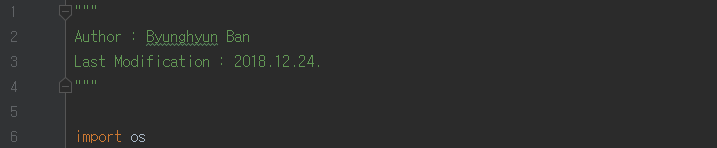 6번 줄에서는 os 모듈을 import 하고 있다. 이번 코드에서는 os모듈이 내장하고 있는 listdir()이라는 함수를 사용할 것이다.