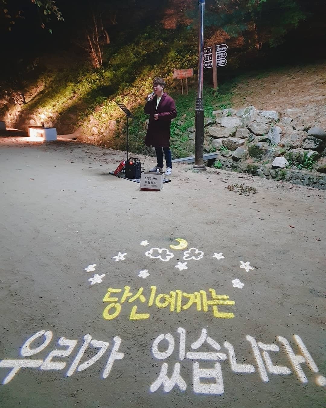 "저번주에는 혼자서 세 시간을 공연 뛰었거든? 그러다보니 정말 많은 사람들을 만났어. 가장 인상적이었던건 발달장애 아동들이 단체로 소풍을 나왔거든."