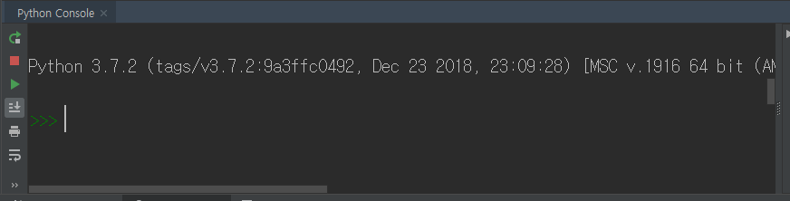상단의 Tools - python Console을 차례로 클릭해 주자. 그러면 파이참 아랫부분에 아래와 같은 새로운 구역이 생겨난다.