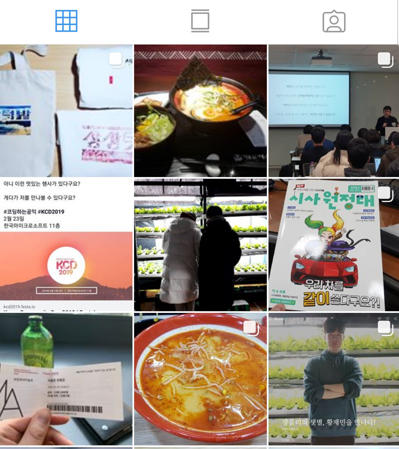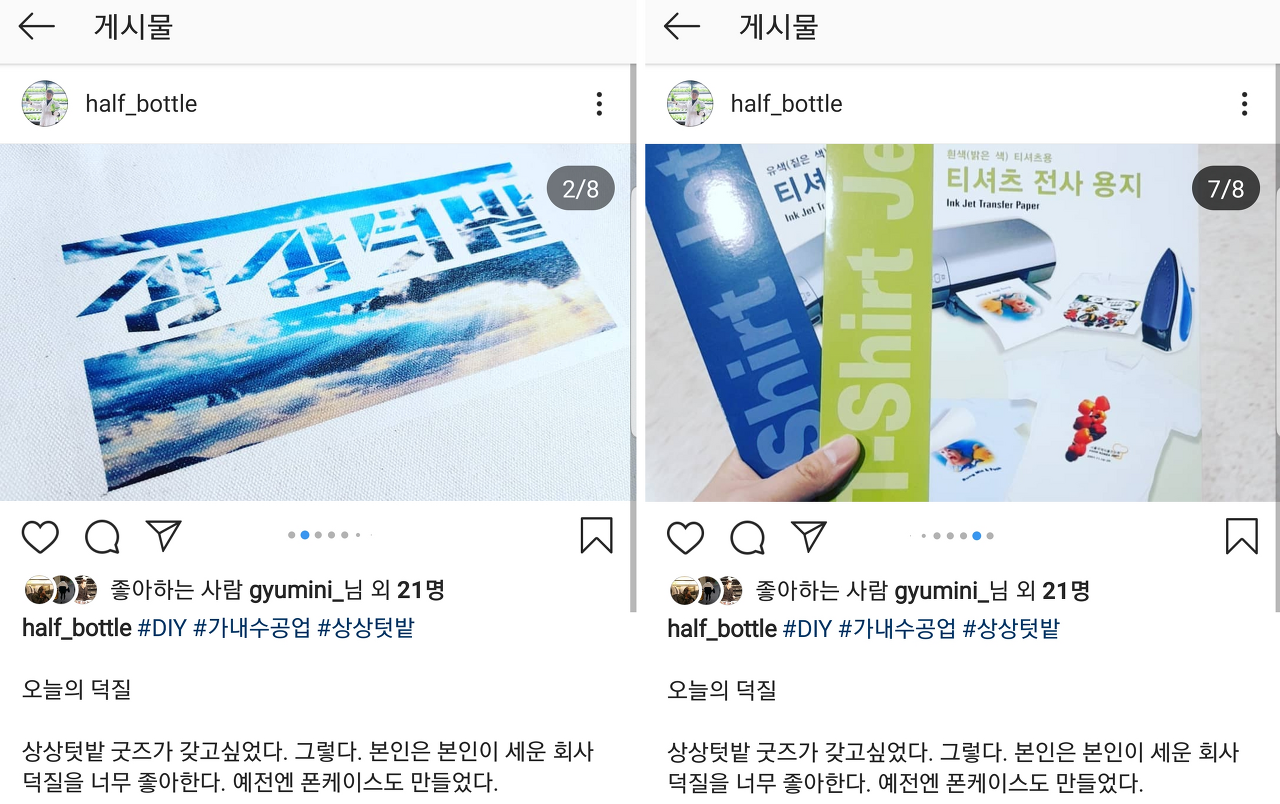 좌측 사진은 가로로 긴 사진이었고 우측 사진은 정사각형 이미지였다. 가로로 길쭉한 사진을 먼저 선택했기 때문에 가로로 길쭉한 형태의 프레임으로 고정되었고, 정사각형 이미지는 아래위가 잘려나가 버렸다. 이런저런 이유로 인스타그램을 제대로 활용하려면 정사각형 이미지를 사용할 수밖에는 없는 것이다.