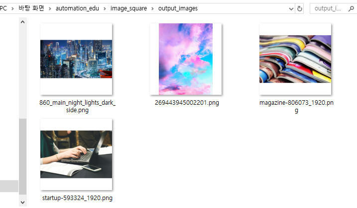 16번 줄은 input_dir 내부의 목록을 불러오고 있다. 즉, 정사각형으로 바꾸고자 하는 사진 파일 목록을 만드는 코드다.