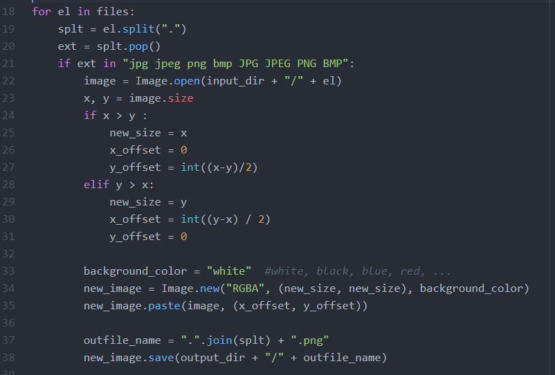 33번 줄에서는 여백에 들어갈 배경색을 입력한다. 필자는 흰색이 깔끔해서 white로 했는데, 다른 색을 원한다면 적어 주면 된다. PIL에서 어떤 영문자를 색깔로 인식 가능한지는 Pillow 도큐먼트를 읽어보기 바란다.