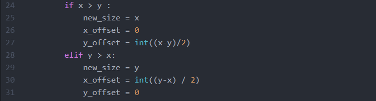 35번 줄에서는 원본 이미지를 이 흰색 이미지 위에 덮어 씌운다. 이 과정에서, 여백을 사이에 두고 이미지가 정중앙에 들어갈 수 있도록 앞서 계산한 x_offset과 y_offset을 반영해 준다.