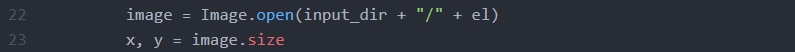 23번 줄은 이미지의 사이즈를 확인하고 있다. x에는 가로길이, y에는 세로 길이가 저장된다.