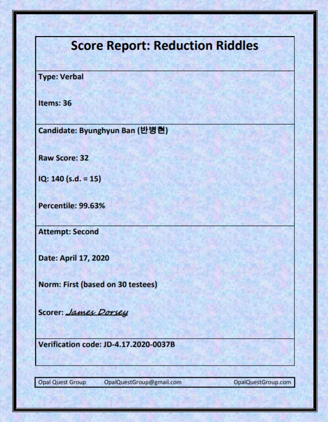 2020/06/04 - [IQ 관련] - [고지능자용 IQ 검사] Reduction Riddles 비용, 방법, 후기