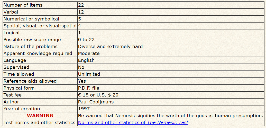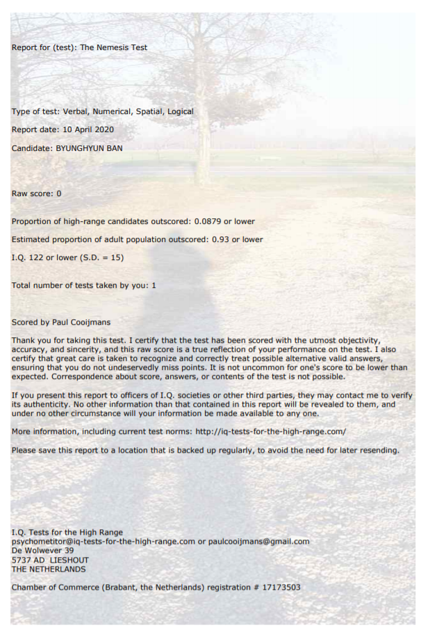 2020/06/04 - [IQ 관련] - [고지능자용 IQ 검사] The Nemesis Test 비용, 후기, 방법