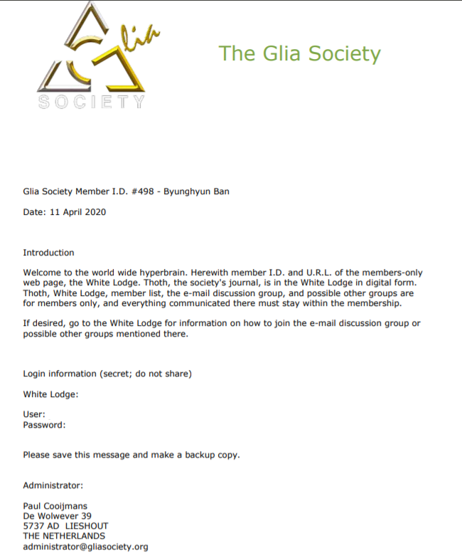 Paul Coojiams가 만든 Glia Society의 멤버가 될 수 있다.